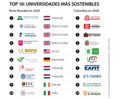 Por otra parte, la firma UI Green Metric publicó su más reciente ranking de las universidades más sostenibles a nivel mundial en la que aparecieron siete instituciones de educación superior de Colombia dentro de las mejores 100.